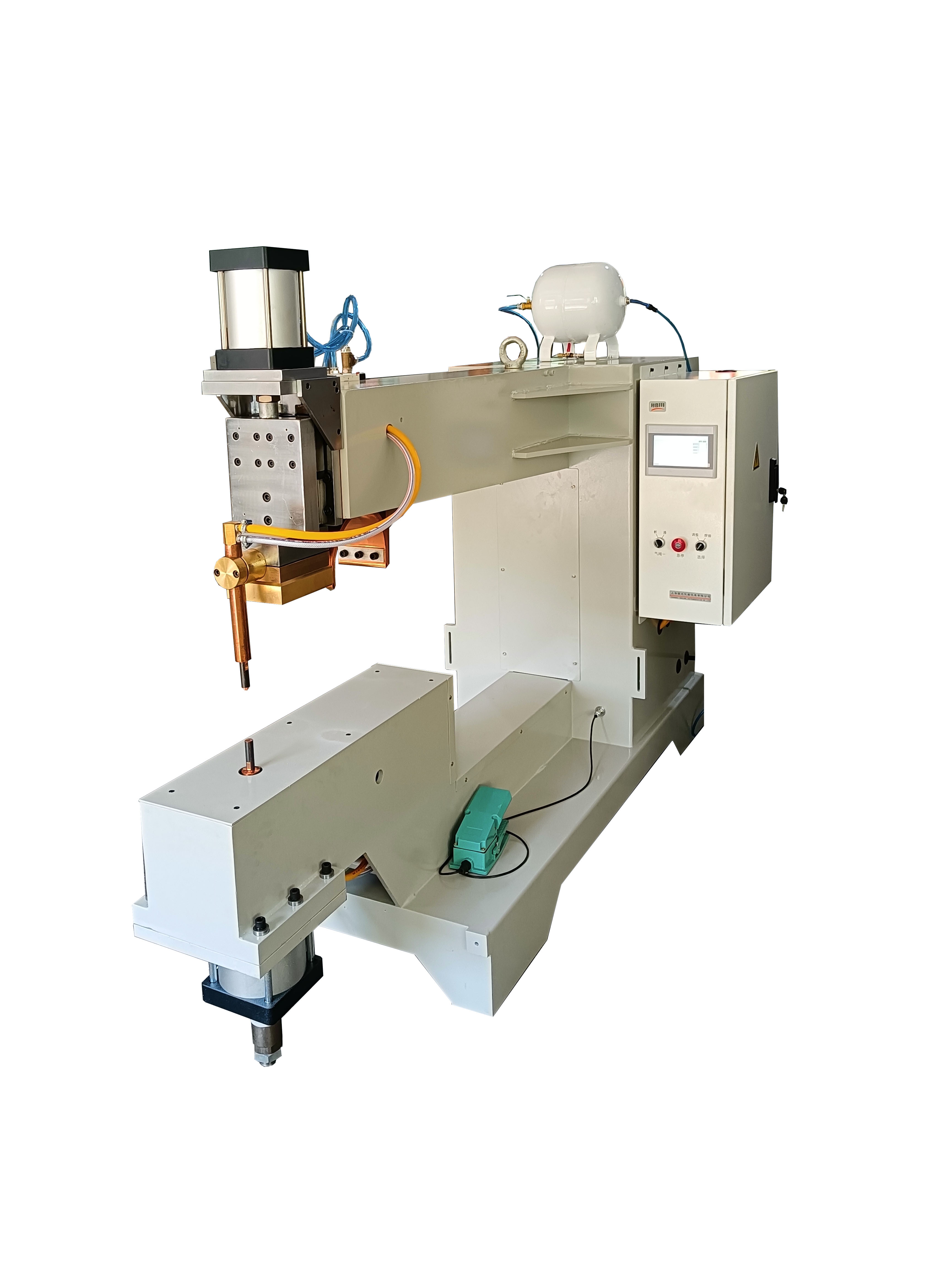 縫焊機(jī)就是指焊件裝配成搭接或?qū)咏宇^并放置于兩滾輪電極中間,滾輪電極加壓焊件并旋轉(zhuǎn),連續(xù)或斷續(xù)脈沖送電,形成一條連續(xù)焊縫的電阻焊機(jī)器。可以說(shuō),縫焊機(jī)是點(diǎn)焊中的一種演變。
