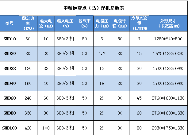 低碳鋼板、不銹鋼板、鍍鋅板、鋁板、線材的點(diǎn)焊、多點(diǎn)凸焊、汽車制造行業(yè)高強(qiáng)度鋼、熱成型鋼的點(diǎn)焊和螺母凸焊,以及高低壓電氣行業(yè)銅線、銀點(diǎn)和銅板的焊接。